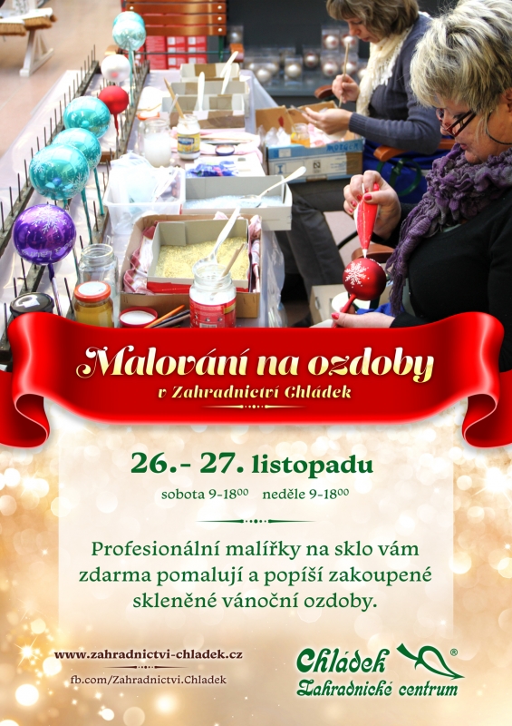 Přijďte si k nám nechat namalovat na tradiční skleněné české vánoční ozdoby Vaše přání, věnování nebo jméno Vašich nejbližších. Profesionální malířky Vám budou k dispozici denně od 9:00 do 18:00 o prvním adventním víkendu.