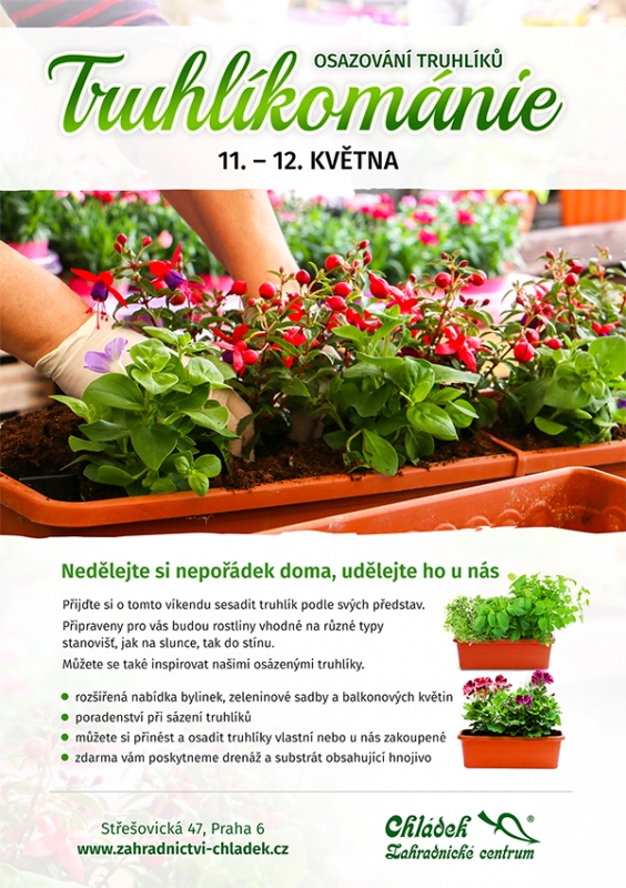 Přijďte si o těchto víkendech sesadit truhlík podle svých představ. Připraveny pro vás budou rostliny vhodné na různé typy stanovišť, jak na slunce, tak do stínu. Můžete se také inspirovat našimi osázenými truhlíky.